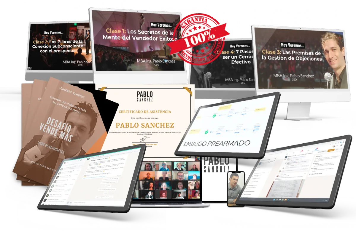 Te llevas el paso a paso para cerrar ventas como experto que fue validado en miles de dolares en ventas. Eso lo aprendes desde la teoría (el por qué) con cada día del Desafío Vende Más y desde la práctica con entrenadores profesionales (incluido).